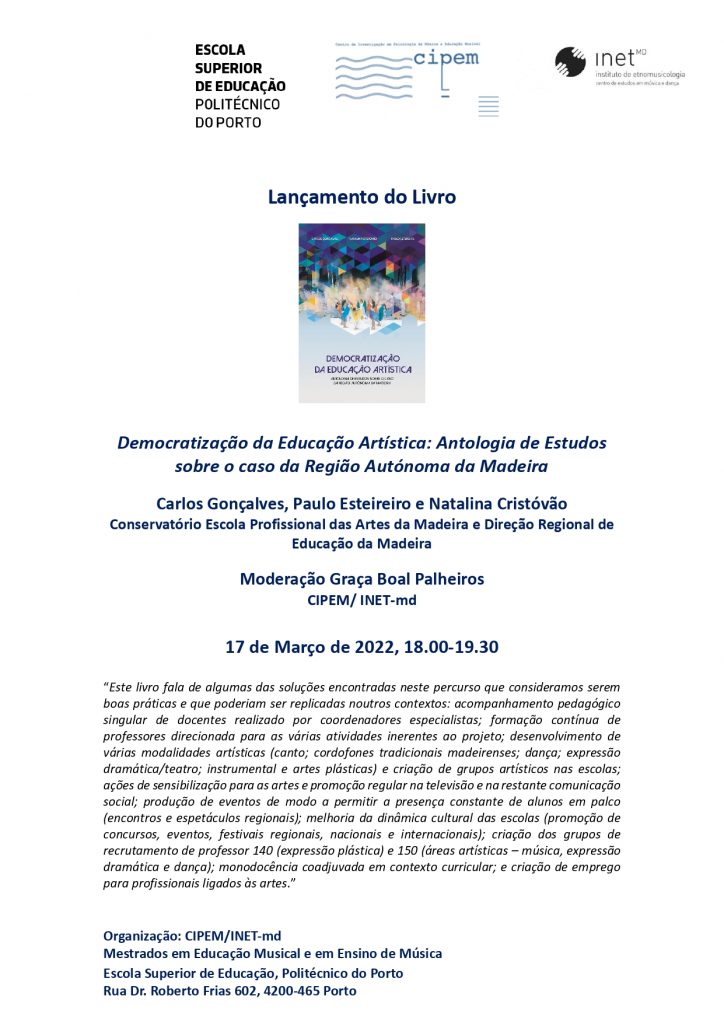 Apresentação do livro “Democratização da Educação Artística: Antologia de Estudos sobre o caso da Região Autónoma da Madeira”