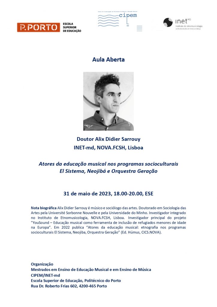 Aula Aberta | Atores da educação musical nos programas socioculturais El Sistema, Neojibá e Orquestra Geração | 2023-05-31